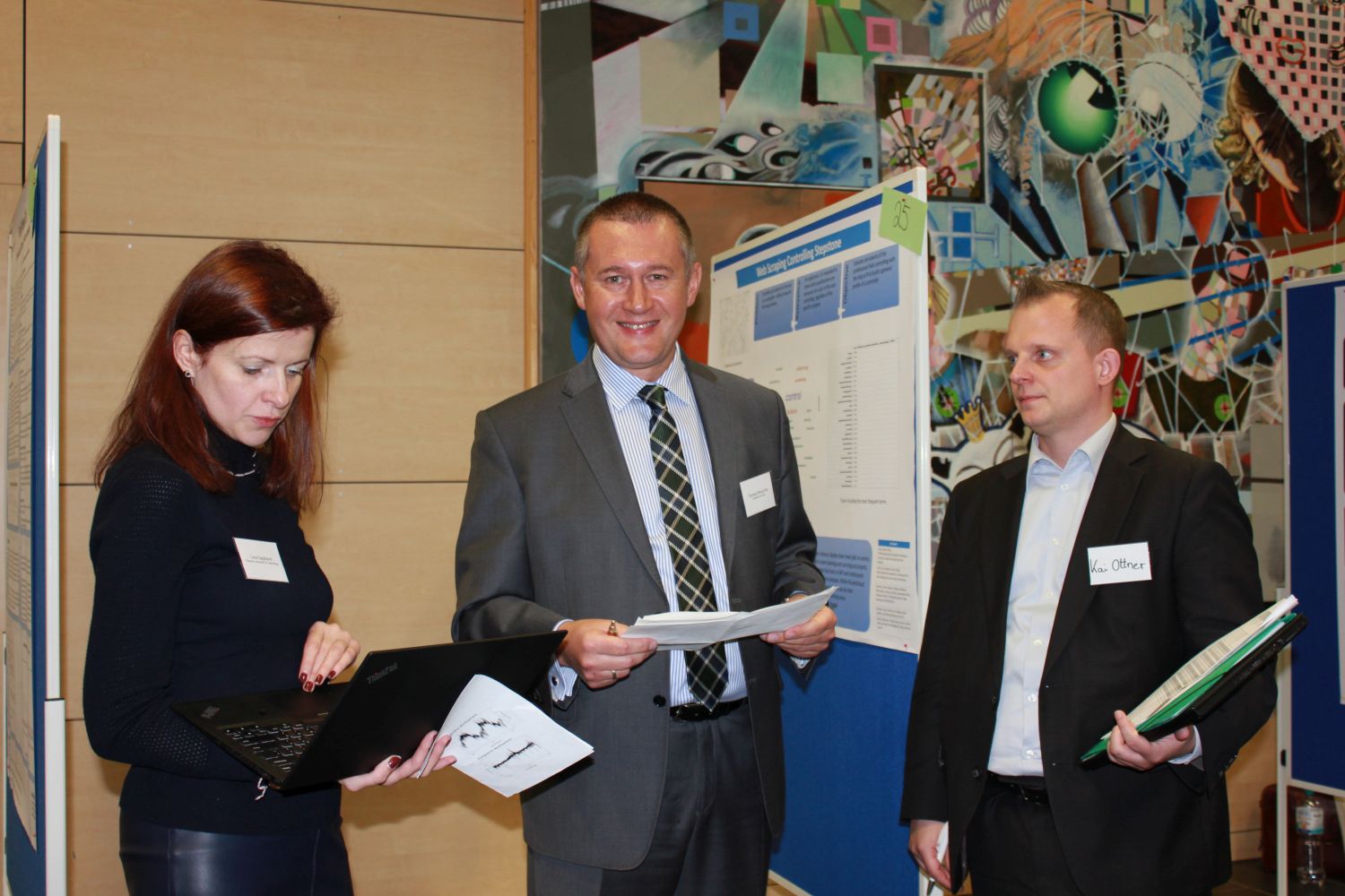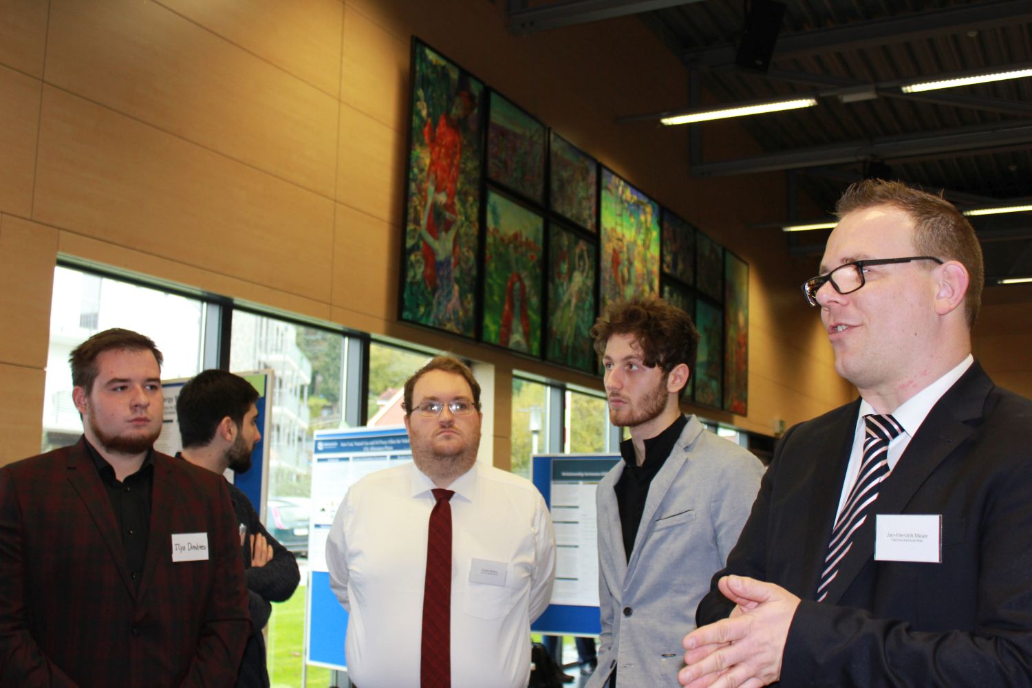 Über drei Stunden nahm sich die Jury Zeit, sich alle Poster vorstellen zu lassen und den Studierenden Fragen zu stellen. Danach gab es bei einem kalten Buffet die Möglichkeit, sich untereinander auszutauschen.