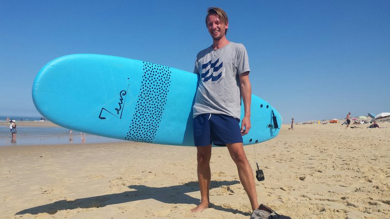 Von Kiel bis nach Paris ging es für Thomas Boßmann im Flixbus. Die 17 Stunden Fahrt mit vielen Zwischenstopps und dem durchgehenden Tragen einer Mund- und Nasen-Maske gestalteten sich nach geraumer Zeit doch ziemlich anstrengend. Bis zu seinem ersten Ziel brachte ihn ab hier die Bahn. Die erste Hälfte seiner Reise war Thomas Boßmann allein unterwegs und begann seinen Urlaub mit einem ein-wöchigen Aufenthalt in einem Surf-Camp. „Ich habe mir schon öfter im Urlaub ein Surfbrett ausgeliehen und wollte immer Wellenreiten. Das hat auch immer viel Spaß gemacht, ging aber nie wirklich über das geradeaus fahren im weißen Wasser (wenn die Welle gebrochen ist) hinaus. Ich wollte es diesmal richtig lernen und mir neben der Theorie auch die richtige Technik zeigen lassen.“ Und auch wenn Thomas Boßmann in dieser Woche einige Male ordentlich herumgeschleudert wurde, so stand er am Ende viel sicherer auf seinem Brett und konnte es sogar ein wenig lenken.