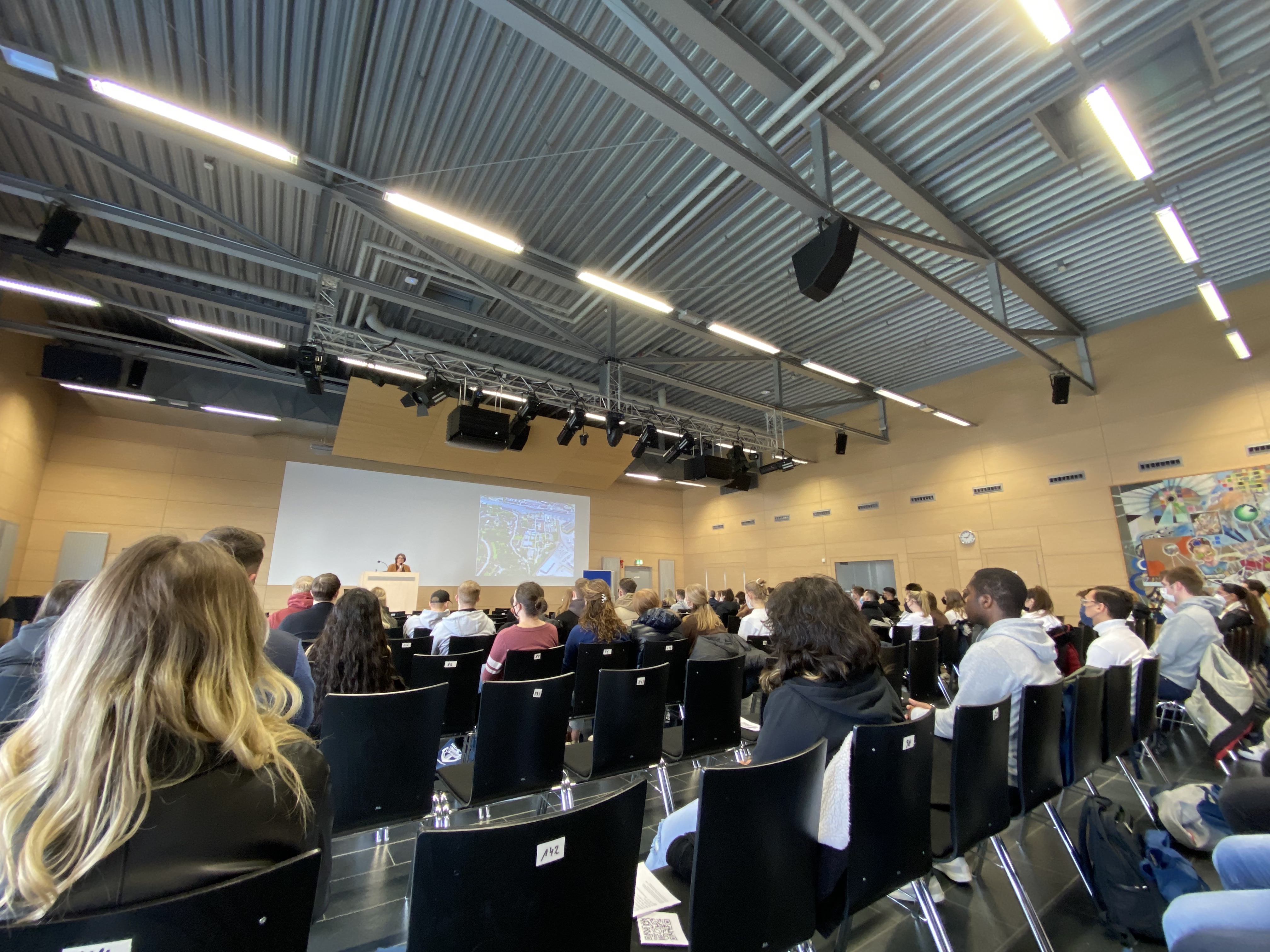 Die Stimmung war sehr gut, doch eine leichte Aufregung der Erstis war deutlich zu spüren. Beim Betreten des Audimax wurden diese von der Fachschaft begrüßt, die für jede*n einen Fachschaftsbeutel, Collegeblock, Kugelschreiber, Turnbeutel und viele Gutscheine für Bars, Restaurants und Freizeitaktivitäten bereit hielt.