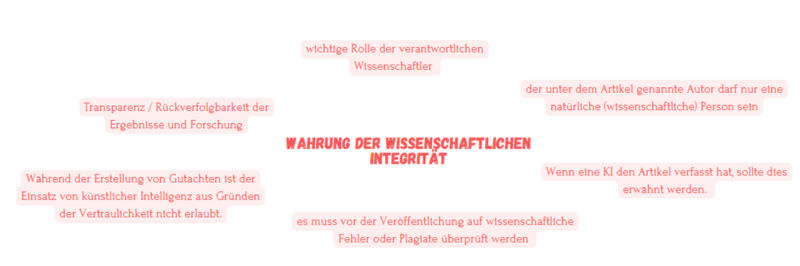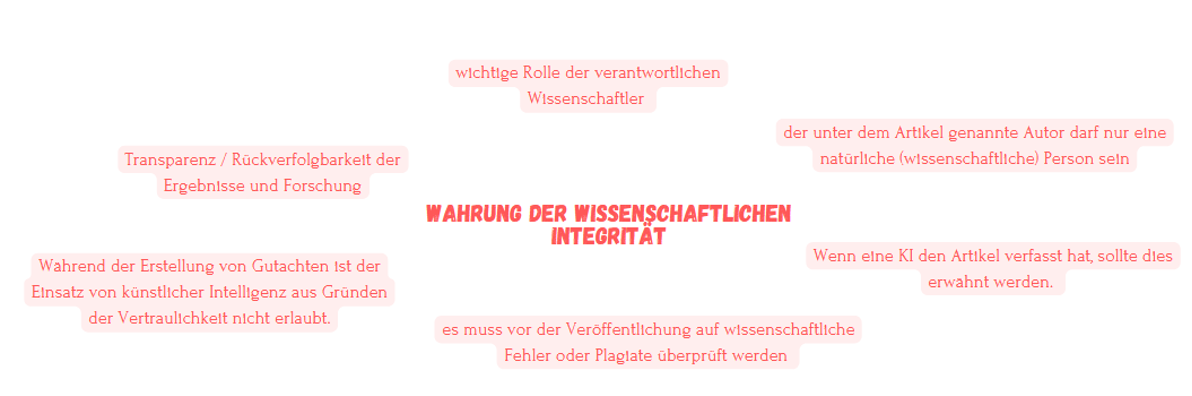 Die DFG betont deshalb die Bedeutung von Transparenz und Nachvollziehbarkeit im wissenschaftlichen Prozess und die Verantwortung der Forschenden für die Einhaltung der Grundprinzipien wissenschaftlicher Integrität. Die Forschung muss offenlegen, ob und wie generative Modelle eingesetzt werden, um geistiges Eigentum zu wahren und wissenschaftliches Fehlverhalten zu vermeiden. Weitere Infos zu den Richtlinien der DFG findet man hier.