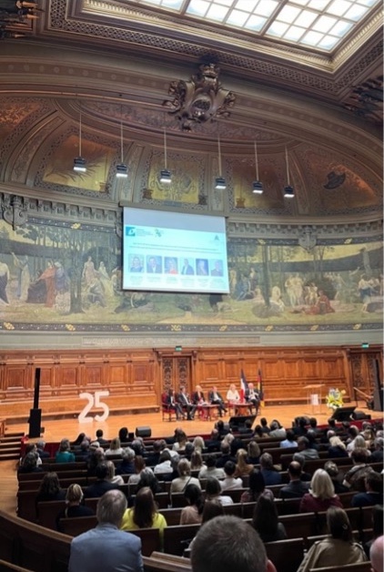 Die Deutsch-Französische Hochschule (DFH) feierte ihr 25-jähriges Bestehen mit einer dreitägigen Vollversammlung an der Université Sorbonne Paris, die am 5. Juni 2024 begann. Der feierliche Eröffnungsabend brachte Vertreter*innen aller Mitgliedshochschulen zusammen, darunter auch Agnès Moiroux (ZSIK) und Prof. Dr. Matthias Dreßler (FBW) von der Fachhochschule Kiel.