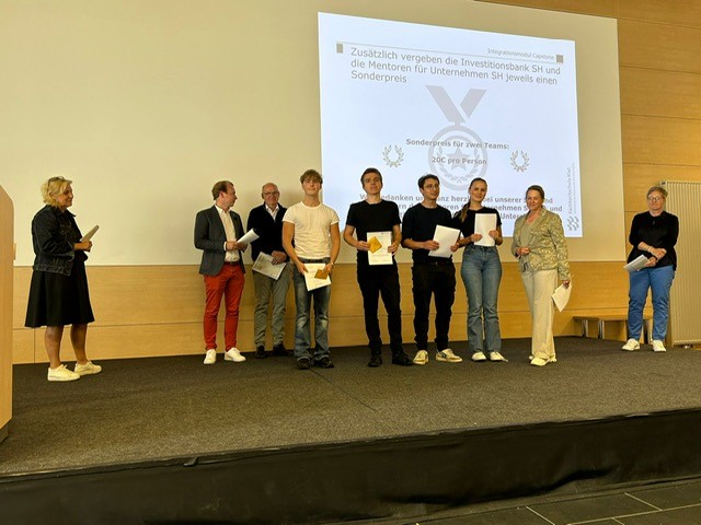 Dorothee Thomanek, Jurorin und erste Vorsitzende des Vereins Mentoren für Unternehmen in Schleswig-Holstein, erklärte: „Wir freuen uns, als Mentoren und Juroren das Projekt Capstone unterstützen zu können. Bei der Verleihung unseres Entrepreneurship-Preises haben wir besonders auf die Machbarkeit des Finanzplans der Ideen geachtet – ein wichtiger Bestandteil bei Neugründungen.“