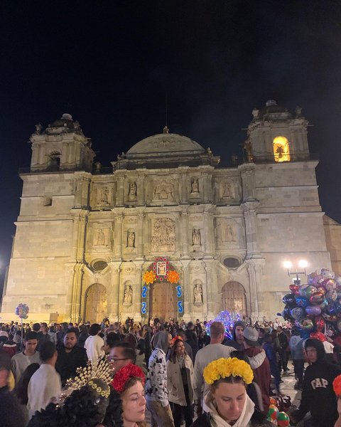 Ganz anders als bei uns in Deutschland wird hier in Mexiko der Tag der Toten zelebriert und die Friedhöfe auch für Touristen geöffnet, wobei in der Stadt große Bühnen aufgebaut werden und es alles wie eine große Feierlichkeit wirken lässt.