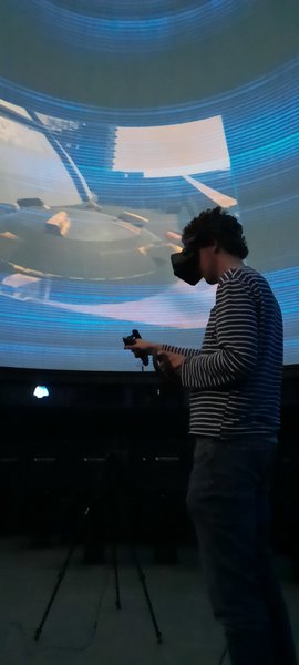 Infotext: Codename: Red Giant ist ein kooperatives, storybasiertes multiplayer Game, welches die Planetariumskuppel, eine Valve Index VR Brille, eine Tablet-Anwendung und analoge Rätsel im Mediendom miteinander verbindet. Die Idee ist, ein auf dem Konzept der Escape Rooms basierendes narratives Erlebnis zu schaffen, in dem eine Gruppe von 3-4 Spielern versuchen soll, durch spielerisches Rätseln und Lösen von Aufgaben, ein gemeinsames Ziel zu erreichen.