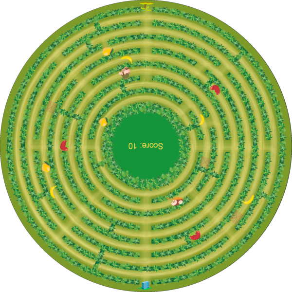 Infotext: In diesem Fulldome Game treten zwei Personen gegeneinander an und müssen ihren Weg durch ein 360° Labyrinth finden. Dabei hat jeder Character eine andere Aufgabe: Der Affe muss zurück in den Dschungel fliehen während der Jäger die Aufgabe hat, den Affen einzufangen. Beide Character können der anderen Figur Fallen stellen. Wer zuerst sein Ziel erreicht hat, hat gewonnen.