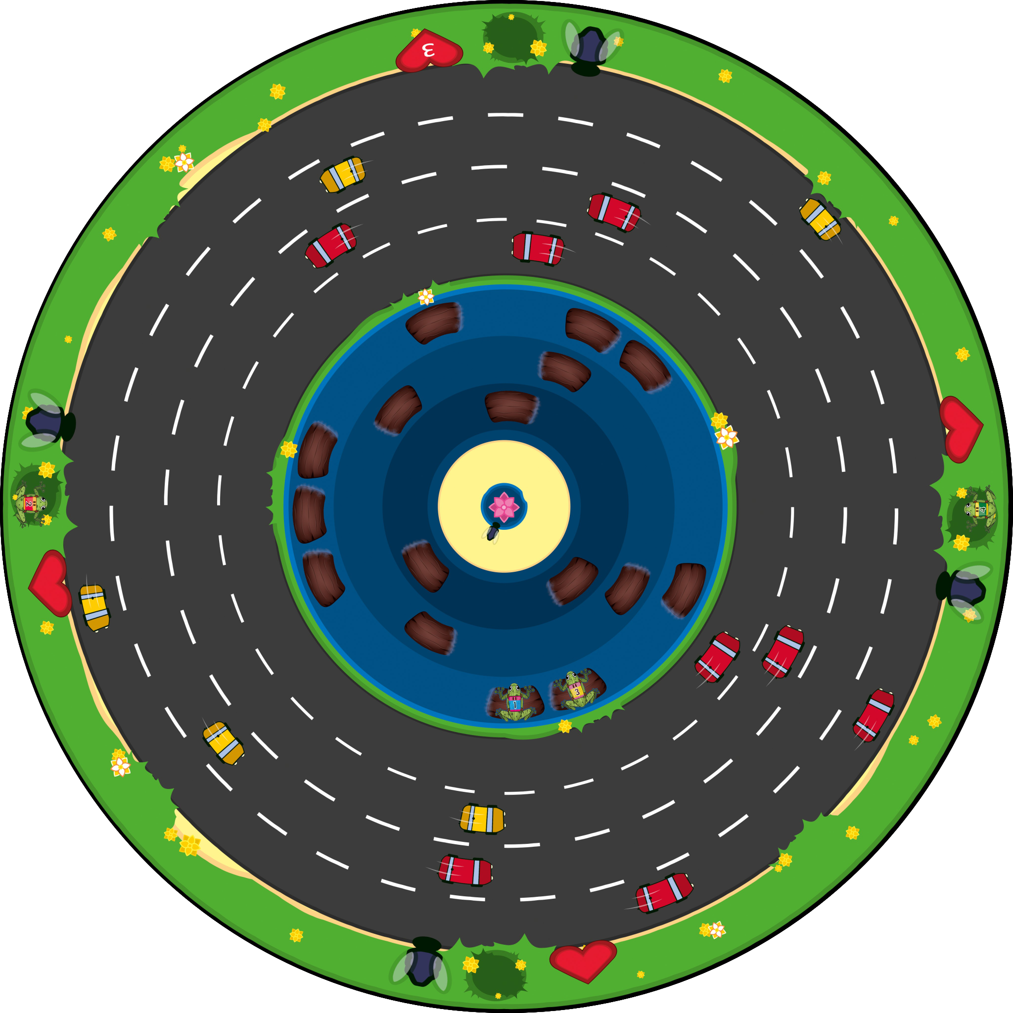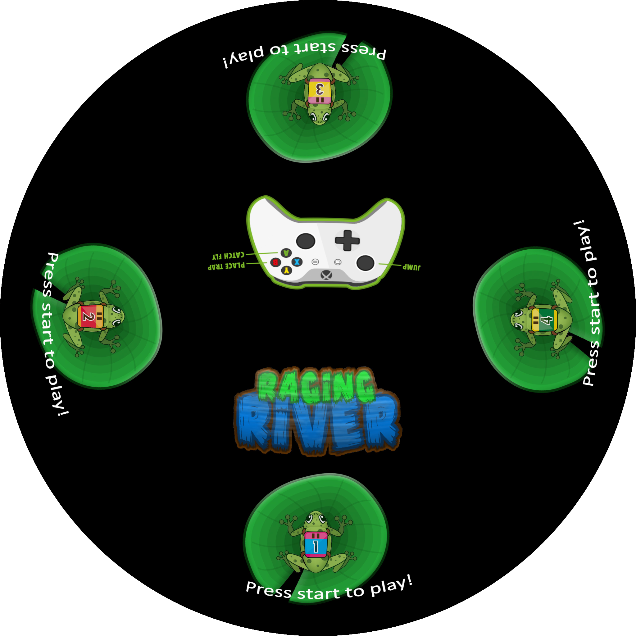 Infotext: Raging River ist ein Multiplayer für bis zu 4 Personen. Dabei muss der eigene Character über eine viel befahrene Straße und einen wilden Fluss vom Kuppelrand in die Kuppelmitte hüpfen, ohne dabei überfahren zu werden. In der Kuppelmitte wartet dann eine leckere Fliege, die vom eigenen Frosch gefressen werden kann. Je mehr Fliegen ein*e Spieler*in fängt, desto mehr Punkte erhält er*sie.