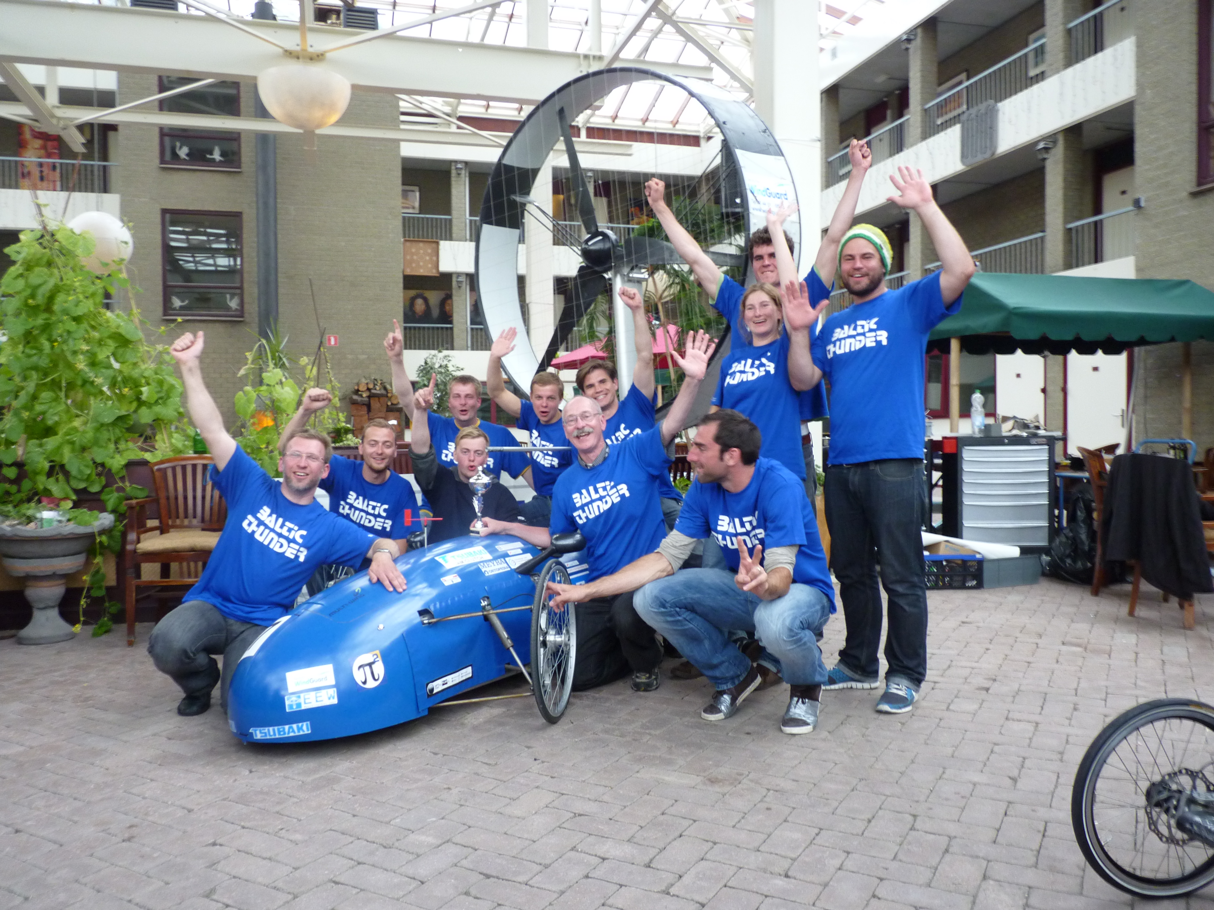 Das „Baltic Thunder“-Team 2011 (von links): Prof. Dr.-Ing. Jan Henrik Weychardt, Jan Ewald, Michael Schwarz; (oben): Christian Springe, Carsten Lueg, Matthias Nebel, Prof. Dr. Alois Peter Schaffarczyk, Felix Mund, Nadine Kunze, Christoph Preuss und Johannes Mücke