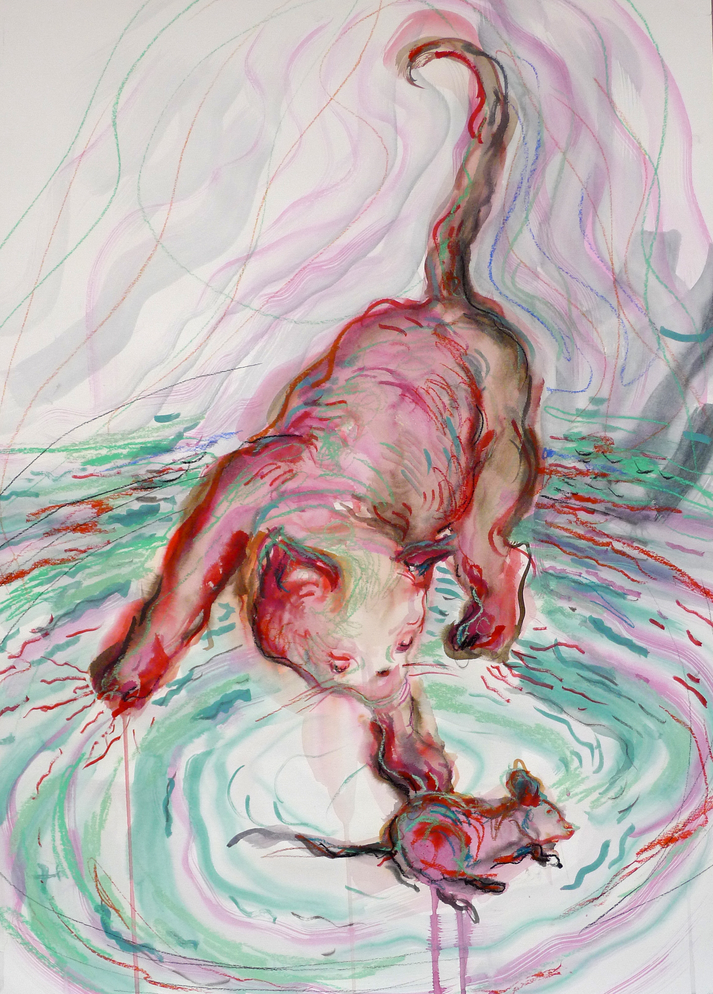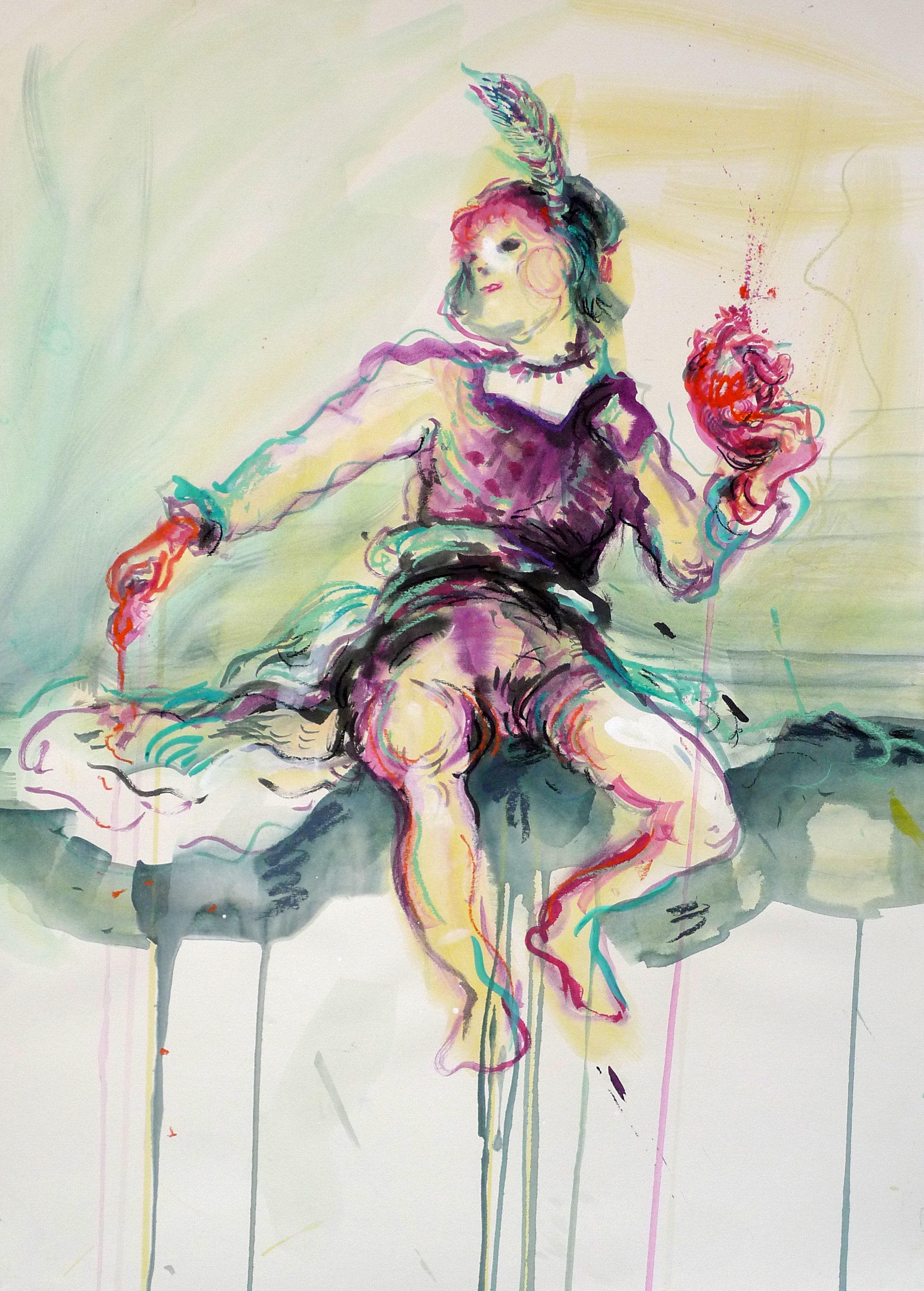 „The Play”, aus: Gasping Society, Tusche auf Papier, 70 x 50 cm, 2017.