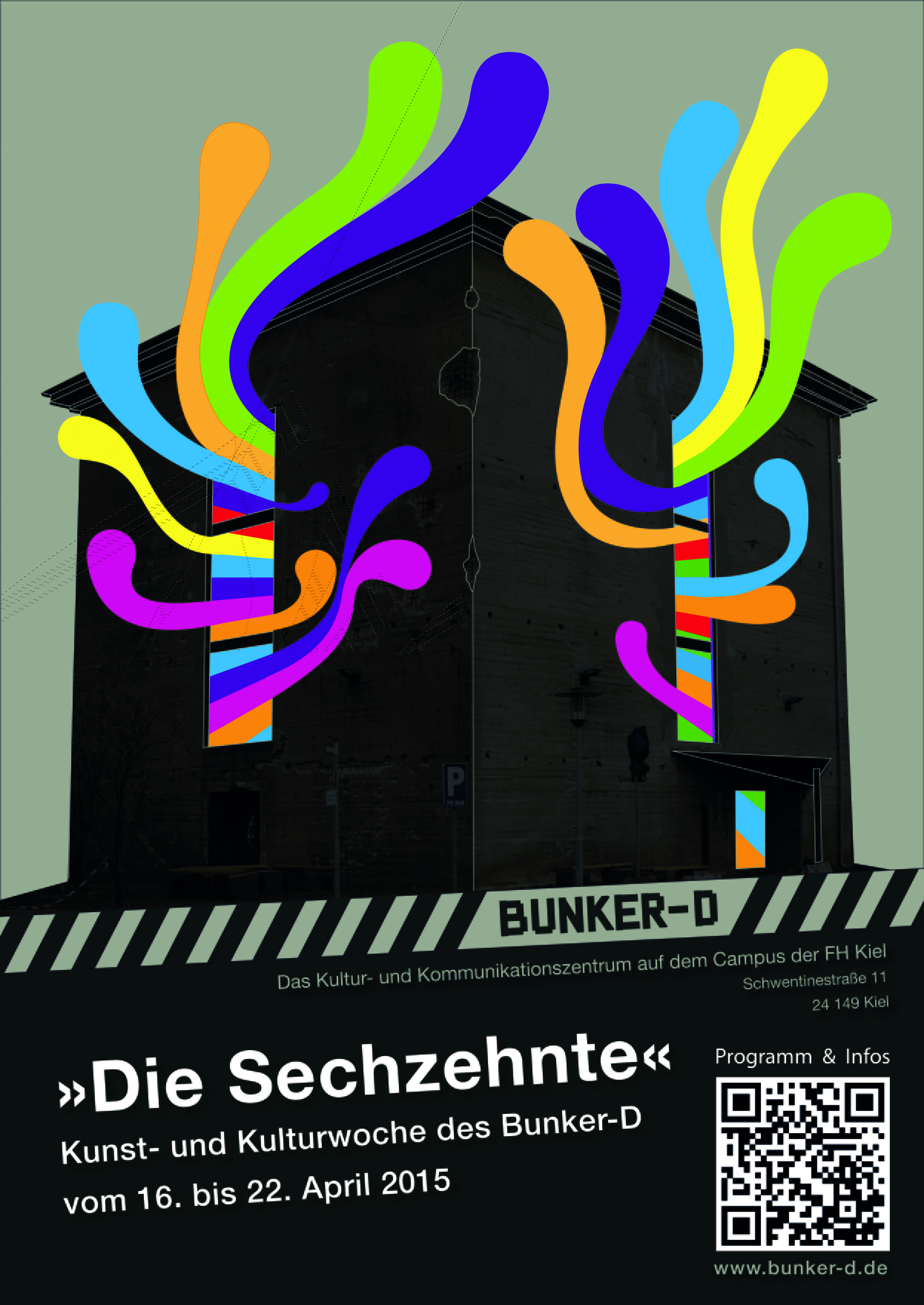 Zweimal jährlich lädt die Fachhochschule Kiel (FH Kiel) zur Bunkerwoche herzlich in ihr Kultur- und Kommunikationszentrum Bunker-D ein. Auf dem Programm: Kino, Kunst, Kulinarisches, Literatur und Musik. Vom 16. bis 22. April 2015 findet die Bunkerwoche zum 16. Mal statt.