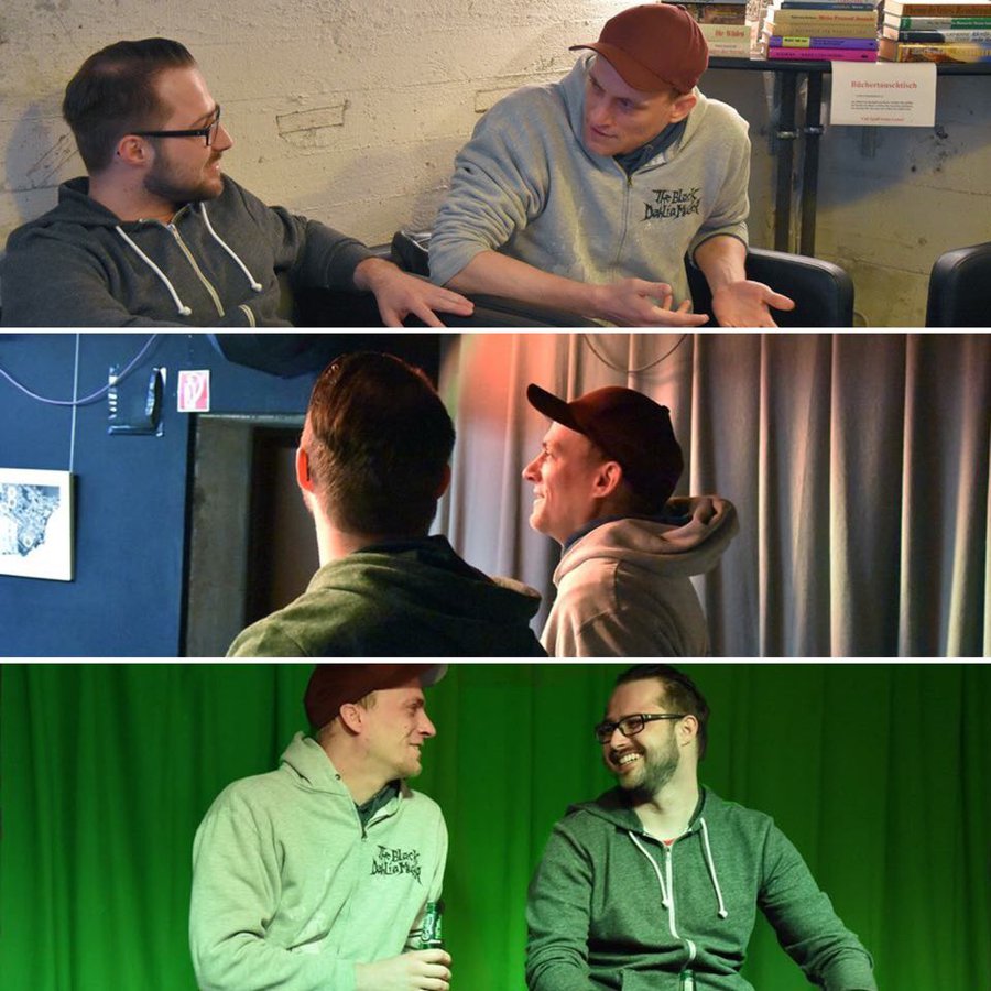 Nun apropos Café, Antonio und Nico gönnen sich ein kaltes Bier und begleiten mich hinunter zur Bunker-Bühne. Wir spielen ein bisschen mit den Lichteffekten hin und her und entscheiden uns für ein entspanntes Grün. Zusammen setzen wir uns auf die Bühnenkante und kommen ins Plaudern. Olli und Nico haben quasi schon gemeinsam den Sandkasten gerockt und sind seit Urzeiten befreundet. Irgendwann entschieden sie wie aus dem Nichts: „Jetzt machen wir Musik! Ein Problem gab es allerdings“, erzählt mir Nico lachend. Für ihn stand fest, dass er niemals auftreten will. Und zu zweit schon mal gar nicht. Um aus der Bredouille zu kommen, mussten deshalb erstmal geeignete Bandkollegen her. Aber Casting und Auswahlverfahren kamen nicht in Frage, denn „Rescue Neverland“ ist eine „Freundschafts-Band“.