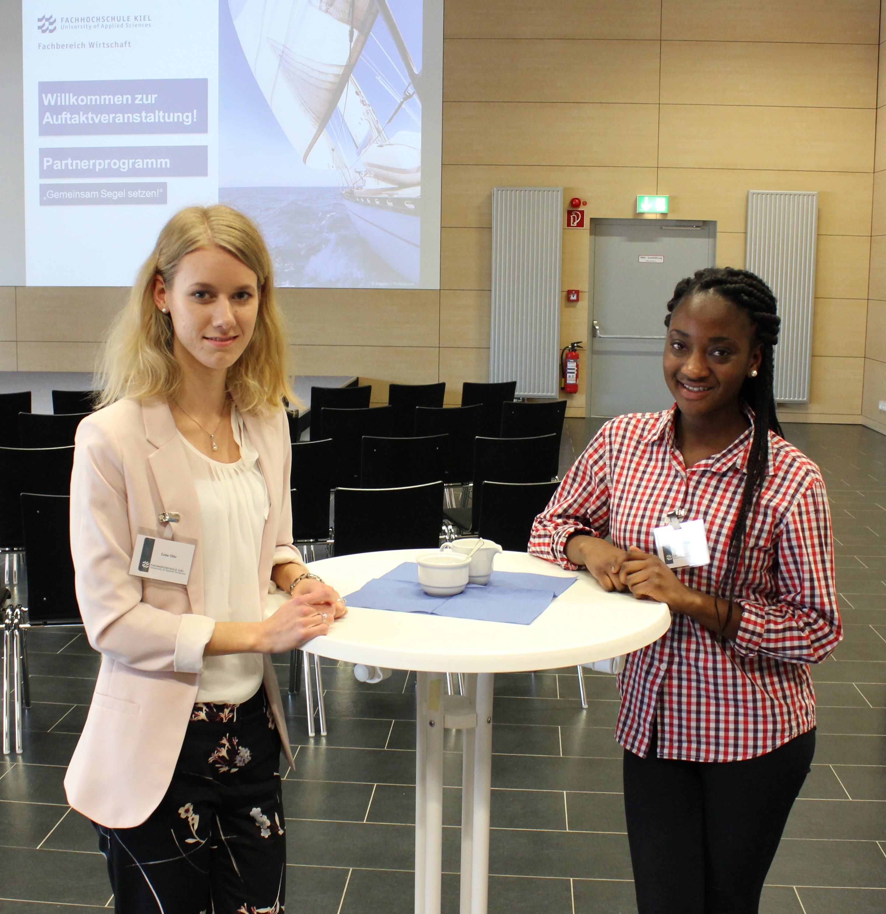 - Die BWL-Studentinnen Lena Otto und Claudia Sarpong (v. l.) nehmen am