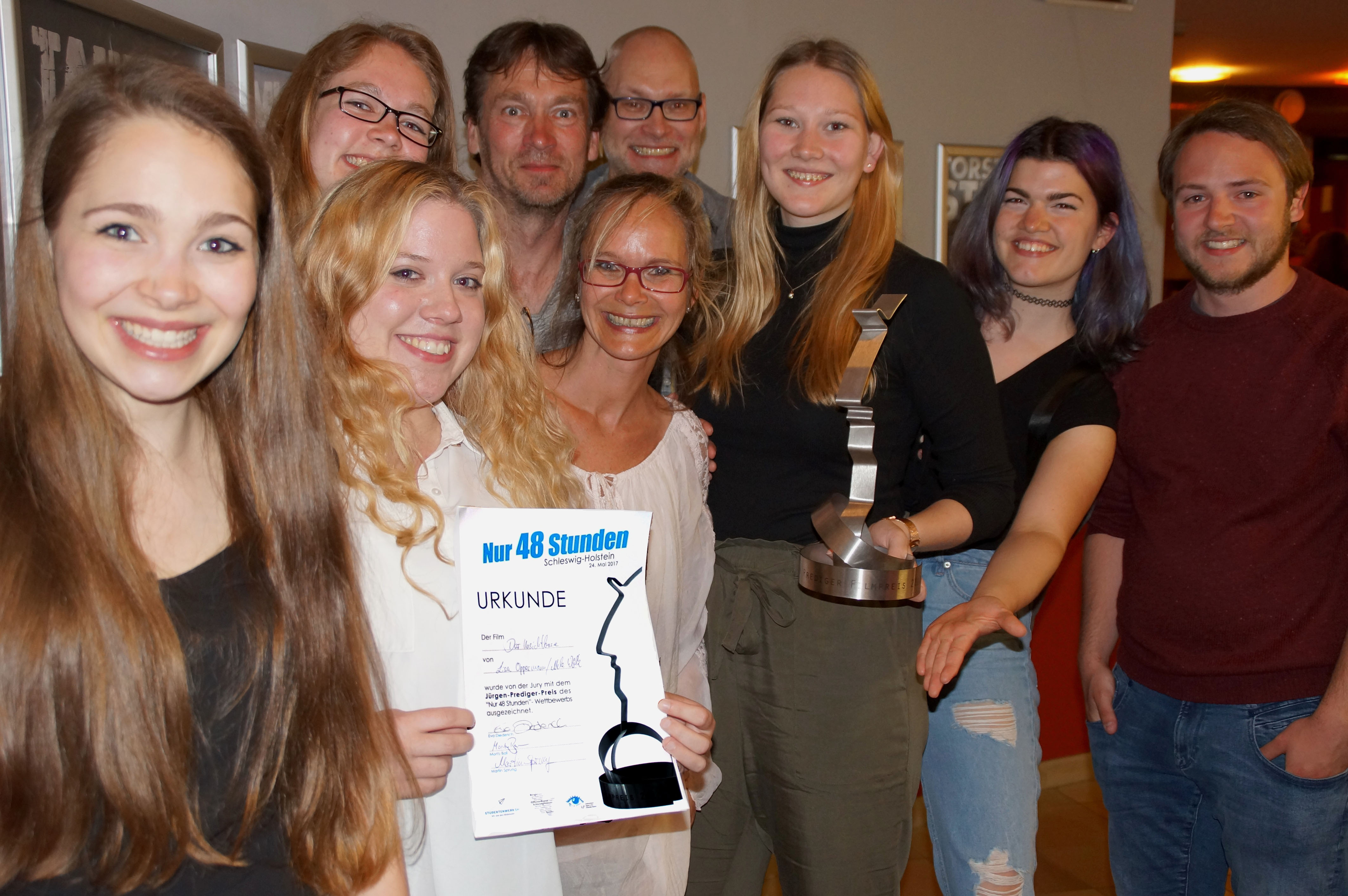 Fünf Medienstudierende der Fachhochschule (FH) Kiel haben mit ihrem Beitrag „Der Unsichtbare“ den Filmwettbewerb „Nur 48 Stunden“ und damit auch den Jürgen-Prediger-Filmpreis gewonnen. Im Kurzfilm von Jantje Knecht, Lisa Oppermann, Nicolas Wittke, Nele Wöhlk und Wiebke Waller gewährt ein Unsichtbarer einen humorvollen Einblick in sein Leben und findet immer einen Weg, seine Ziele zu erreichen.