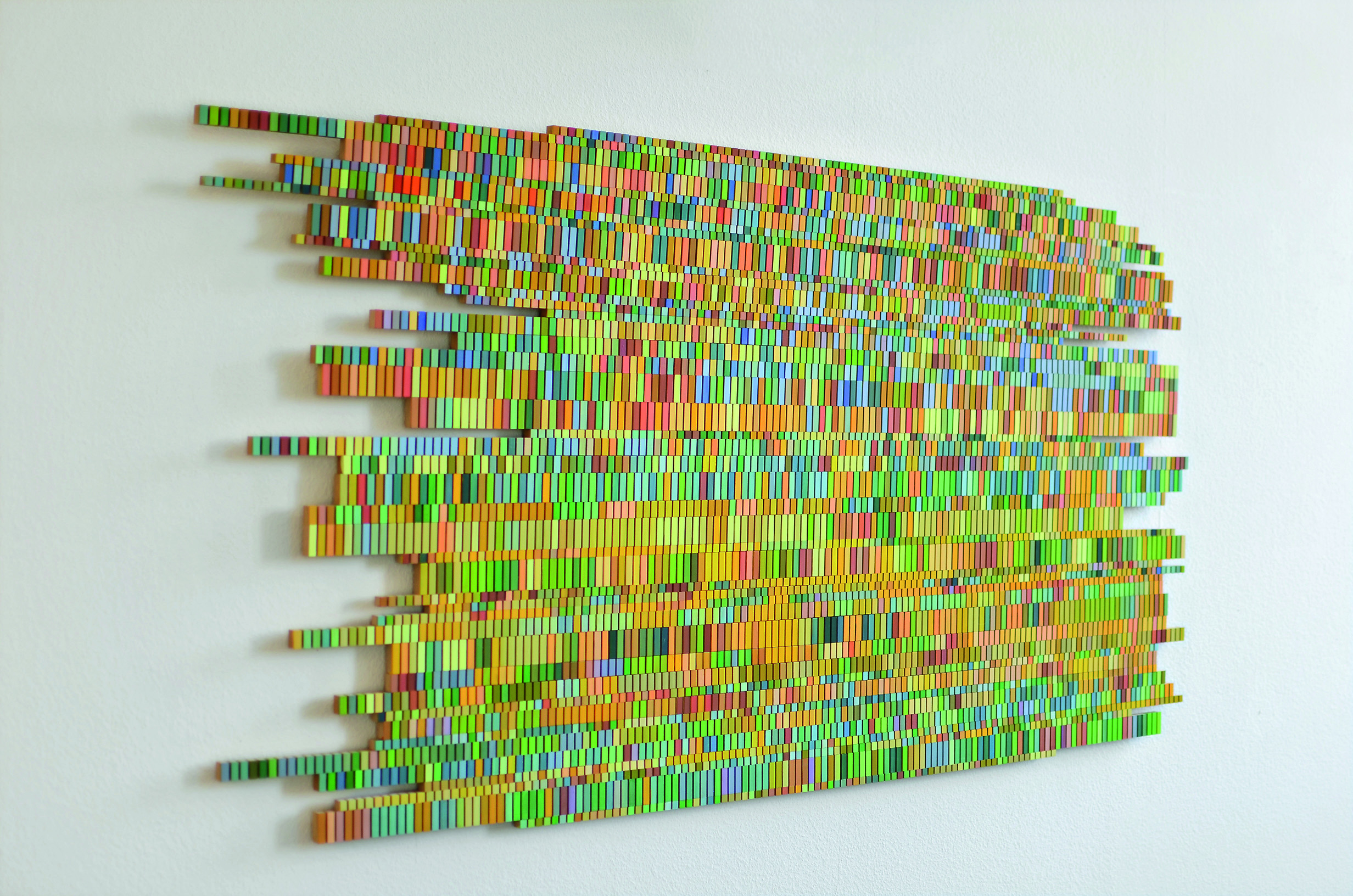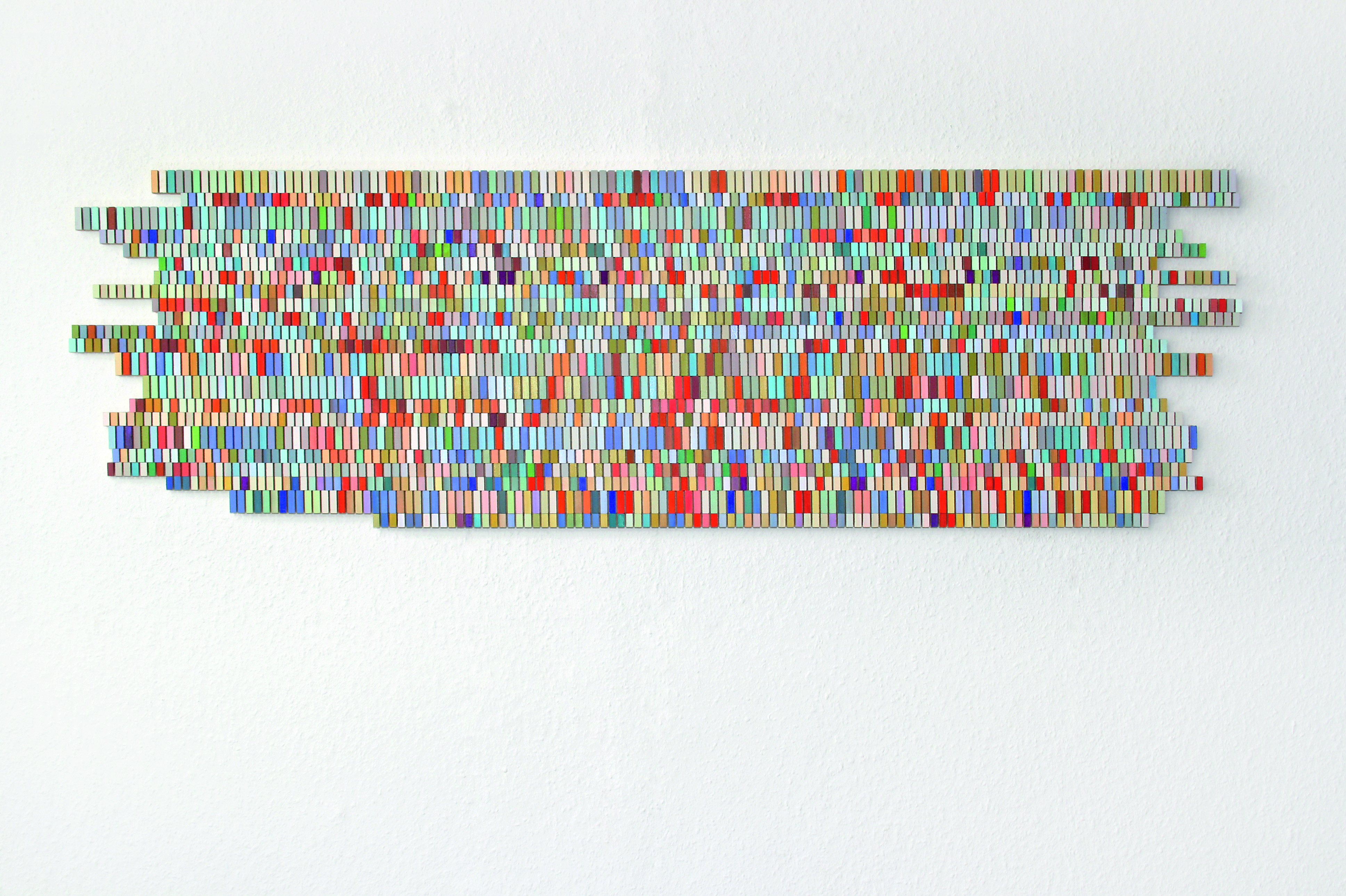 „Wir können nur einen kleinen Teil all der Fenster zeigen, die uns im Kopf herumschwirren“, sagt Susanne Nothdurft. Mit Fadenhang präsentiert sie bemalte Fäden und grafische Linien, die sich rhythmisch, zufällig und gesteuert bewegen. Ihre Arbeit Mein neues Zuhause aus dem Werkblock moves, erklärt sie, „lässt durch Ähnlichkeitsbeziehungen zwischen Farben und deren Vielzahl von Farbinteraktionen ein Höchstmaß von unabschließbarer optischer Dynamik in einem rechtwinkeligen Bildsystem entstehen.“ Es gehe ihr um den Betrachter und das zu Betrachtende, das Seh- und Wahrnehmungserlebnis sei unmittelbar.