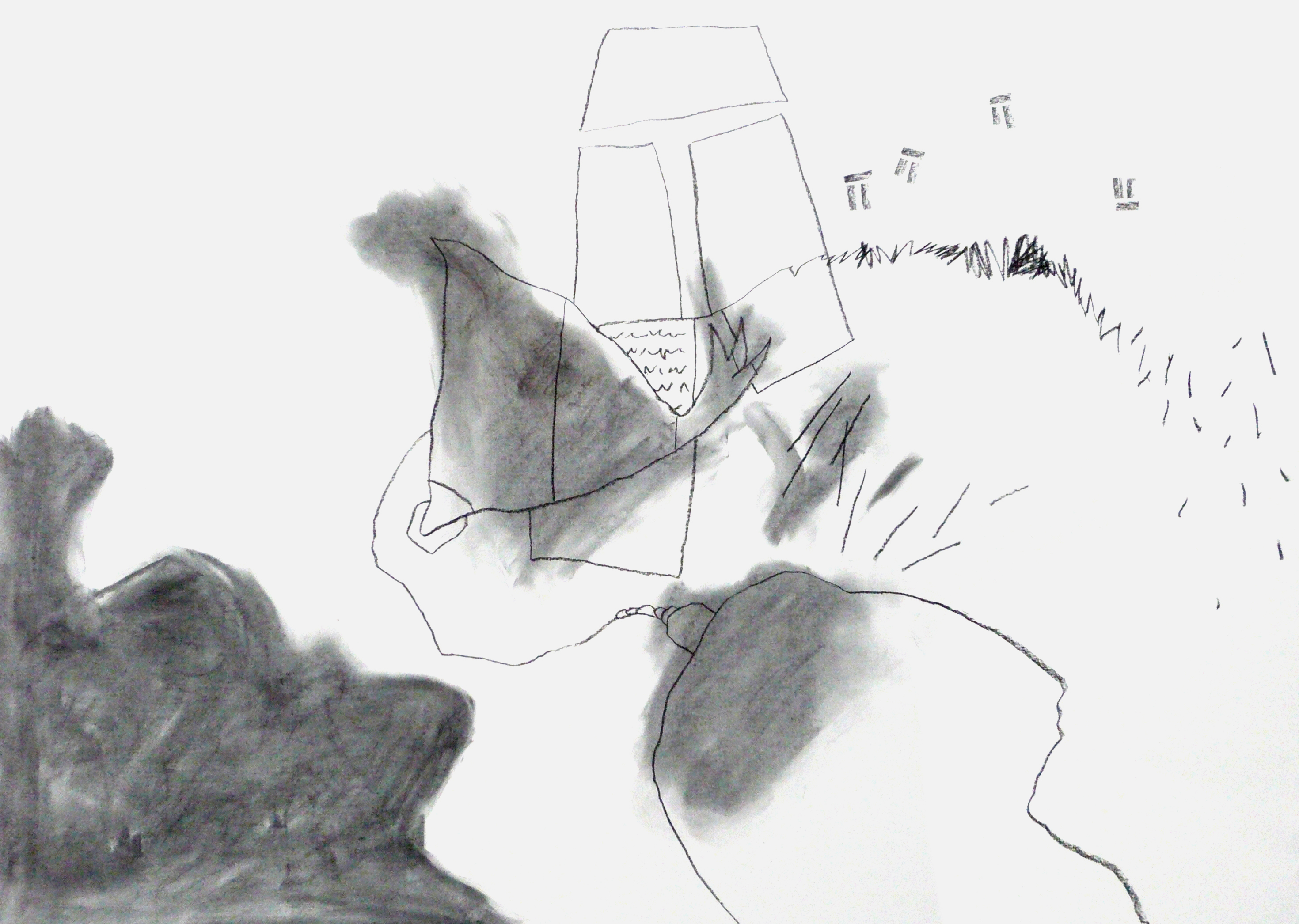 Volker Sponholz nimmt die „Fensterschau“ zum Anlass, nach Jahren der illustrativen und narrativen Arbeit wieder an seine freien grafischen Projekte anzuknüpfen. „Die Freude am freien Zeichnen, am Wachsen und Entwickeln der Arbeit, im Hinterkopf den Durchblick des Fensters, die transparente Grenze, die Sicherheit suggeriert und doch so fragil ist. Das passt zum Bunker-D, diesem unwirtlichen Ort, der Sicherheit vermitteln soll und doch so untrennbar mit Bedrohung verbunden ist“, erklärt der Künstler.