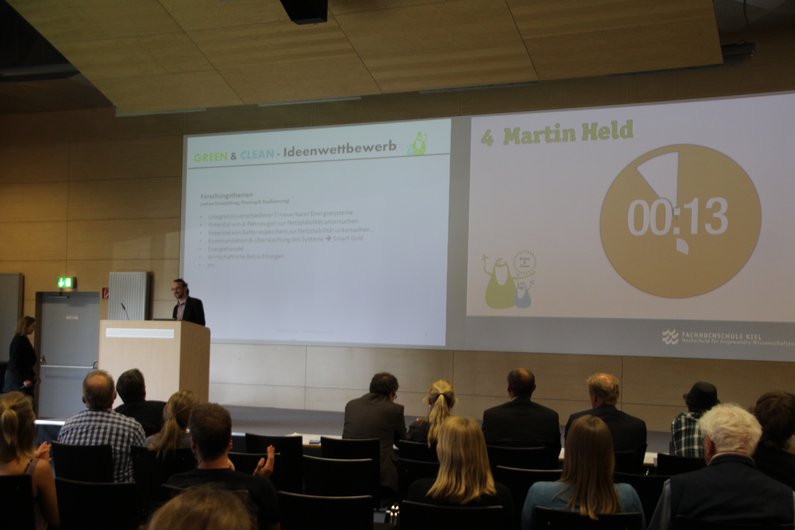 Im Rahmen der Abschlussveranstaltung zum Wettbewerb, am 9. Juni 2016 im Mehrzweckgebäude der Fachhochschule, überreichte Prof. Dr.-Ing. Klaus Lebert die Urkunden und Preisgelder. Platz zwei ging an Sven Lütt mit der Idee, Gehwege zur Stromproduktion zu nutzen. Den dritten Platz bekam Dirk Storm für den Vorschlag zuerkannt, regengeschützte Stellplätze für Fahrräder zu bauen. Dafür bekam er außerdem den von der Förde Sparkasse gesponserten Publikumspreis in Höhe von 200 Euro.
