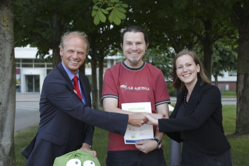 Da die Jury sich zwischen den Kurzpräsentationen der Finalisten nur schwer entscheiden konnte, musste kurzerhand zusätzlich ein Preis für einen vierten Platz ausgelobt werden. Der ging an Renate Bock mit der Idee einer Campuscard, die aus erneuerbaren Rohstoffen besteht. Insgesamt hatte die Jury mehr als 100 von Studierenden und Mitarbeitenden der FH Kiel eingereichte Ideen zu bewerten.