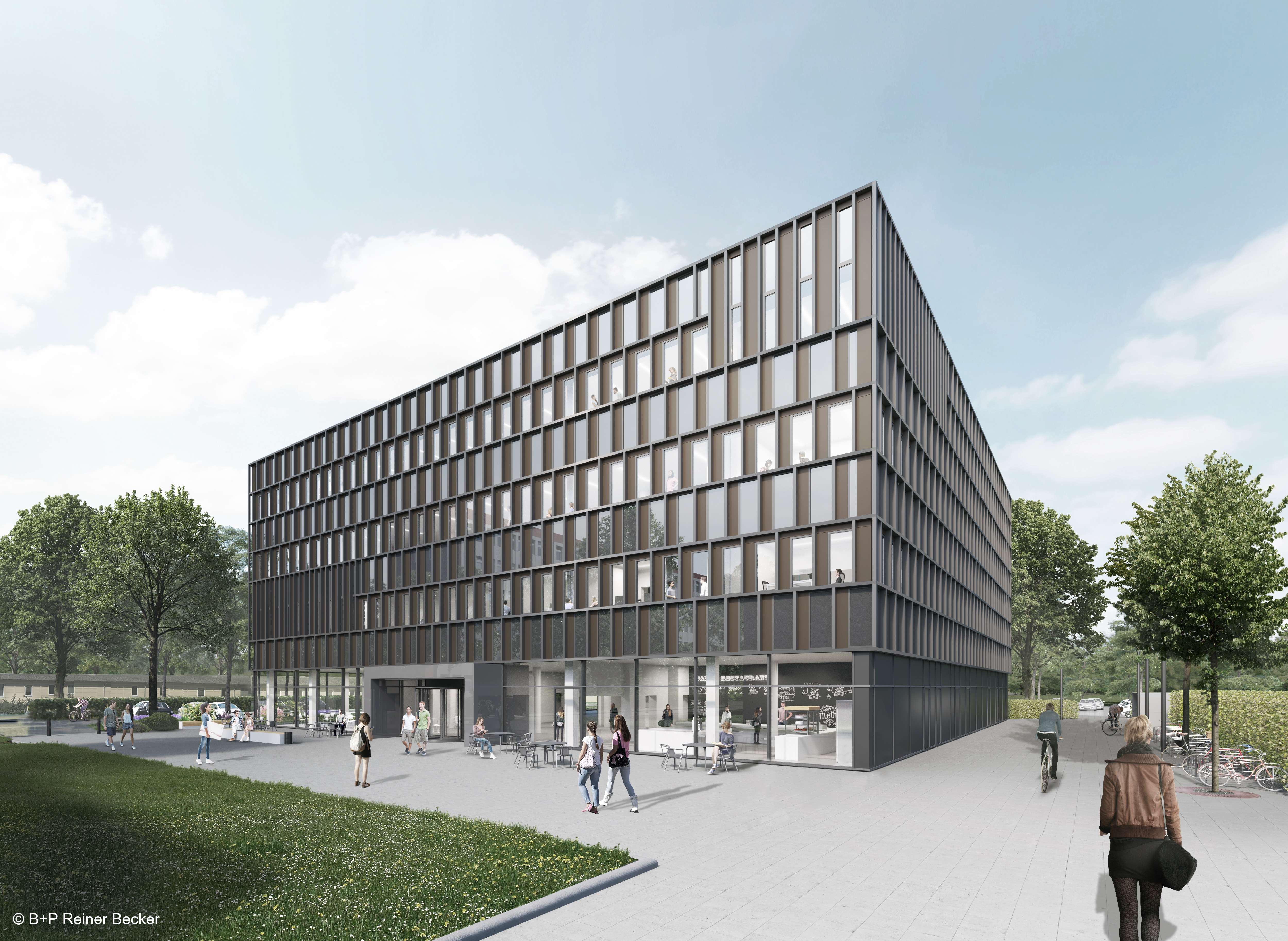 Der Neubau mit Cafeteria, Bibliothek und Büros für das ZLL* soll als neues Zentrum auf dem Campus fungieren.