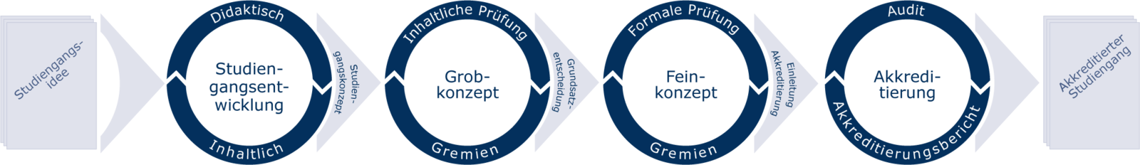 Die Interne Akkreditierung ist analog zu üblichen Programmakkreditierungen entwickelt worden. Die Akkreditierungsverfahren werden auf Grundlage verbindlicher Prozesse und unterstützender prozessbegleitender Dokumente durchgeführt, die den externen Gutachter*innen, den Fachbereichen und der Hochschulleitung ein möglichst zielgerichtetes Arbeiten ermöglichen. Die Akkreditierungsberichte werden nach Abschluss des Verfahrens veröffentlicht.