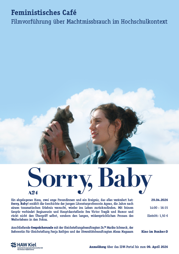 Im Anschluss an die Filmvorführung von Sorry, Baby! laden die Gleichstellungsstelle und die Diversitätsbeauftragte zu einer Gesprächsrunde ein, um über Machtmissbrauch, sexualisierte Gewalt und institutionelle Verantwortung im Hochschulkontext zu diskutieren.