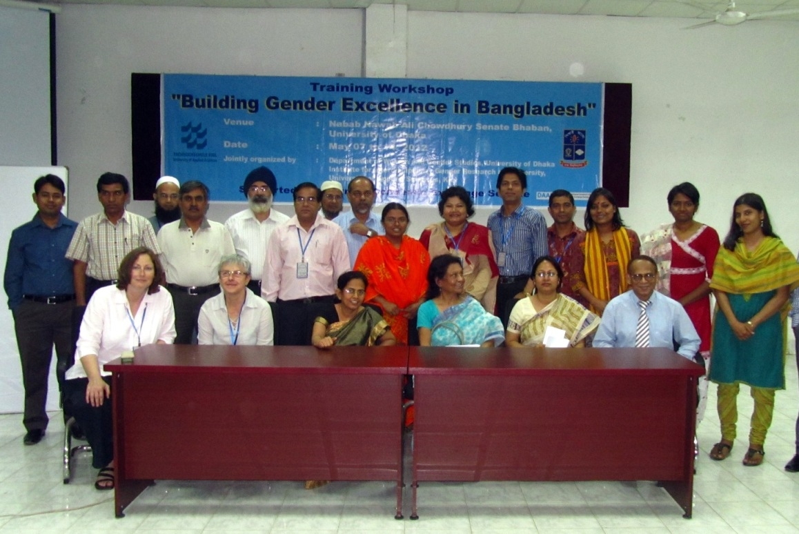 DAAD-Alumni Seminar "Building Gender Excellence in Bangladesh" Vom 7. - 15. Mai 2012 führte das IGD in Kooperation mit dem Department of Women and Gender Studies der Universität Dhaka ein Gendertraining-Seminar in Dhaka durch. Es nahmen 17 Alumni aus Indien und Bangladesch teil. Im Rahmen des Seminars kooperierte das IGD auch mit der Menschenrechtsorganisation Ain o Shalish Kendra, mit Boys for Bangladesh sowie der GIZ und dem Goethe Institut. Im Februar 2013 wird eine zweite, vertiefende Veranstaltung zum Thema "Gender & Higher Education in the Bangladeshi context" durchgeführt. > Artikel zum Gendertraining
